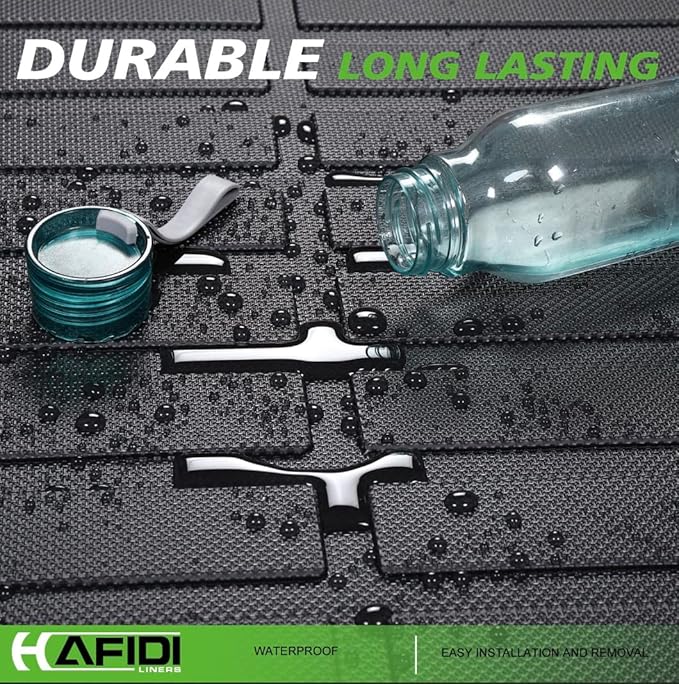 - 【ALL-WEATHER PROTECTION】HAFIDI weatherproof mats. Ergonomically designed channels and raised edges effectively trap liquids, sand, snow, etc. and protect the vehicle floor well. The anti-slip buckle design is consistent with the original car position to ensure that the floor mat is firmly fixed in place.