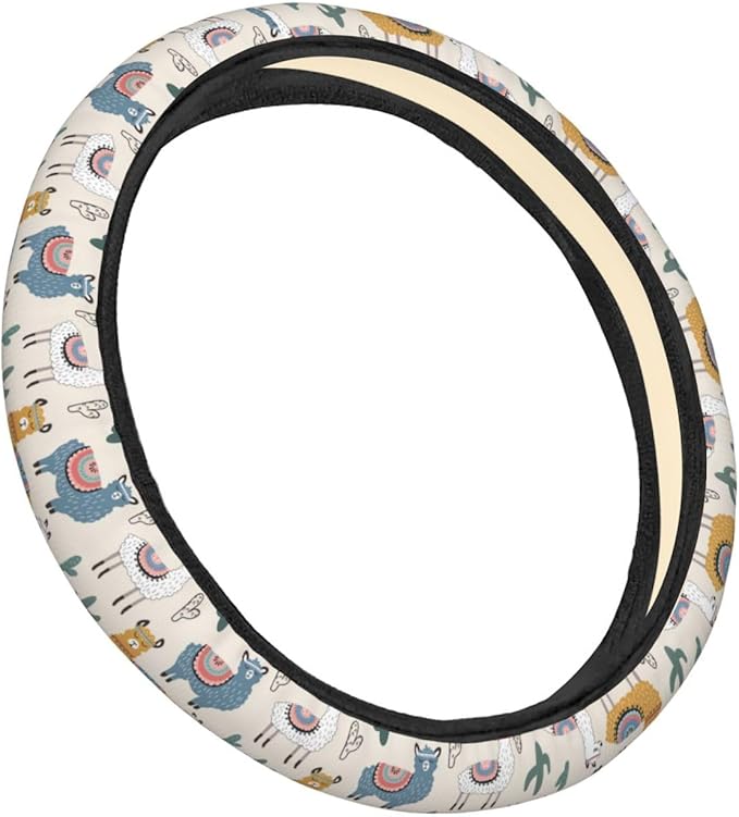 Dujiea Alpaca Cactus Elastic Stretch Steering Wheel Cover, Anti-Slip and Durable Car Steering Wheel Accessories for Women Men, 15 Inch Universal Fit Car, Truck, SUV
