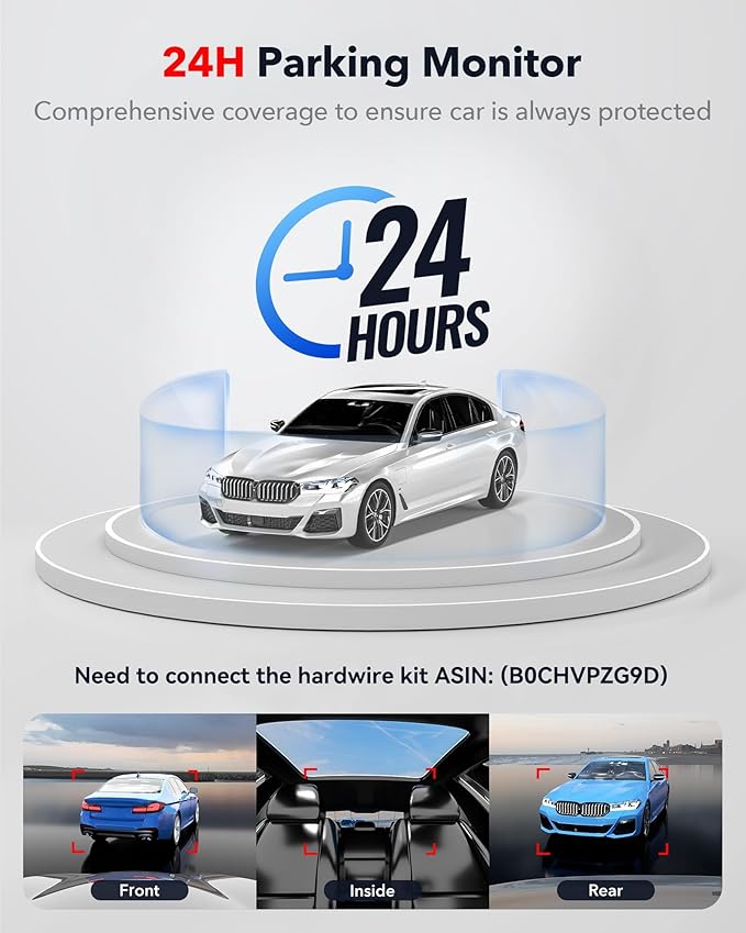 - [Triple Parking Monitor for Max Protection] REDTIGER car security camera features two parking modes to protect your vehicle after using the extra hardwire kit. Time lapse and collision detection modes with G-sensor capture incidents while parked, front, rear, and interior cameras provide comprehensive coverage. Safeguard your vehicle all day.