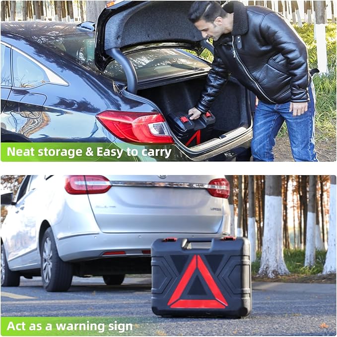- Full Set of Tire Change Kit: The 5 Ton jack enables automatic car lifting, built-in 150 PSI inflator allows rapid tire pumping. Electric impact wrench allows efficient tire bolts installation. Even beginners could change tires on the way