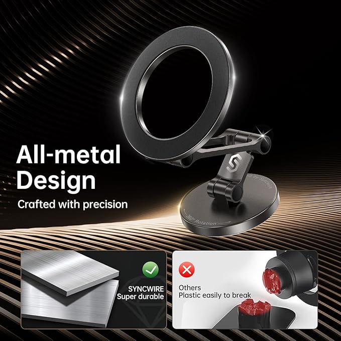 - 【Super Stable Design】The Syncwire MagSafe Car Phone Holder features 3 tightly fastened metal damping axles, which have undergone 12000 durability tests to prevent shaking and displacement during travel, providing optimal stability for your phone.