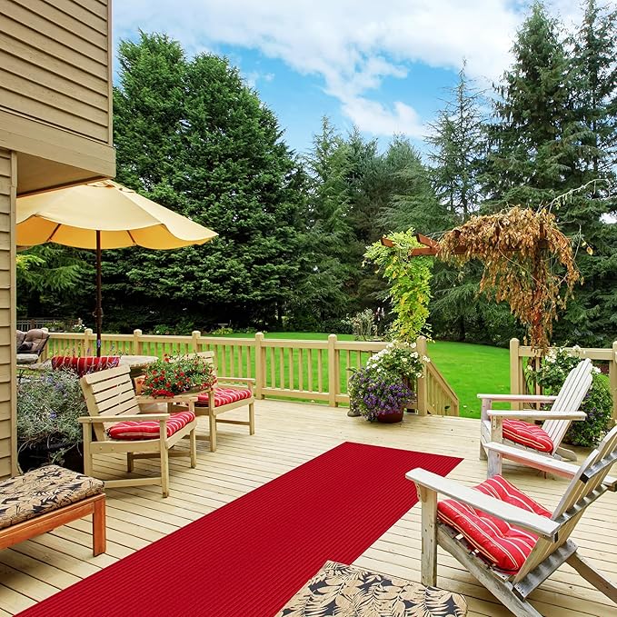 Ottomanson 2'7" x 26' Hallway Runner with Scraper Pile Extra Durable Non-Slip Rug Mat for Indoor & Outdoor Use - Ideal for Kitchen, Entryway, Patio & Garage - High-Traffic Carpet, Red