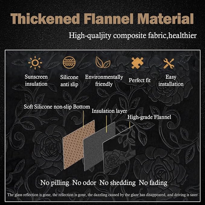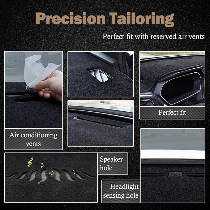 - ๐๐๐ใCustomized Designใ- Laser cutting, customized car mold opening, perfect fit, and the fine stitching is suitable for the arc of the original car. All defrost and AC vents are pre-cut. The back of dashboard cover mat is made of non-slip silicone particles, also equipped with Velcro, which further strengthens the fixing.