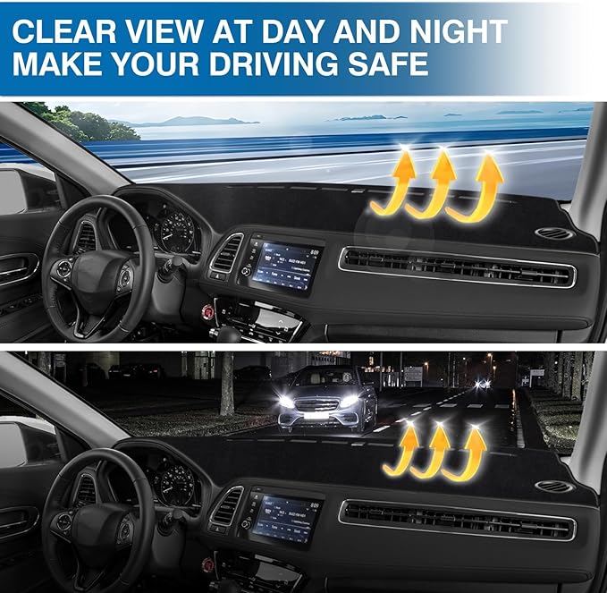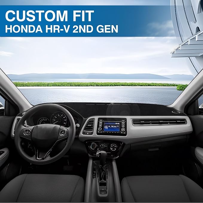 - [Premium Material] Our dashboard carpet cover for Honda HR-V HRV made of rich quality polyester. Soft, breathable and odorless. Not easy to wrinkle. All edges of the car sunshade mat are carefully hemmed and stitched, making the cover comfortable to touch. Its surface is not completely smooth, so items will not fall off.