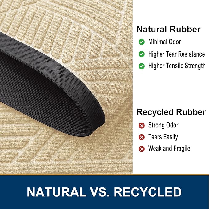 - 【Sturdy & Non-Faded】: Good quality natural rubber makes the door mat long-lasting. Not easy to tear and excellent tensile strength to withstand all weather and seasonal changes. Odorless and fastness to fading makes the process of reuse more pleasant.