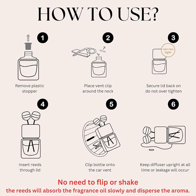 - Car Vent Air Freshener: Car air freshener come with a convenient vent clip that effortlessly attaches to your car's air vents. Enjoy a continuous release of fragrance every time you turn on the air conditioning or heating. Avoid hanging dangle or swing items that obstructs driver’s clear view.