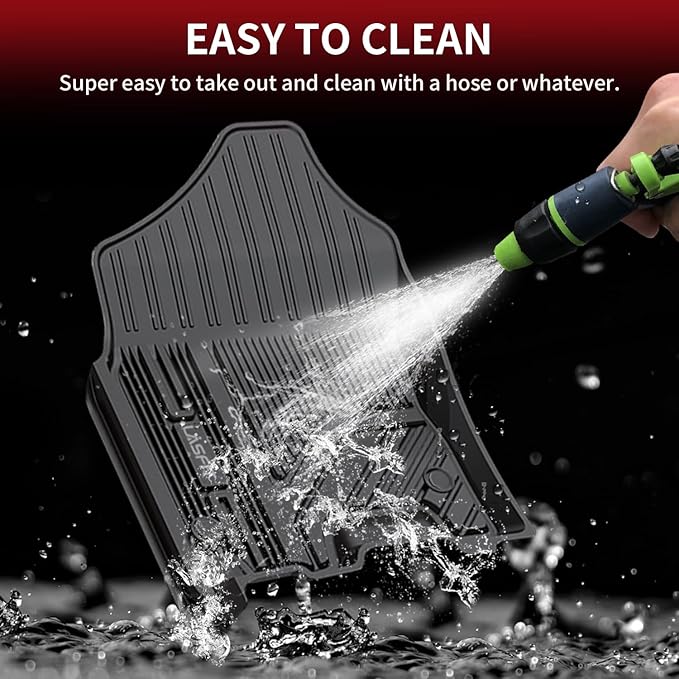 - ALL WEATHER PROTECTION - Shields your floor from dirt, mud, salt, rain, snow and even hot summer temperatures. Cleaning up daily wear and tear off our car mats is a breeze.