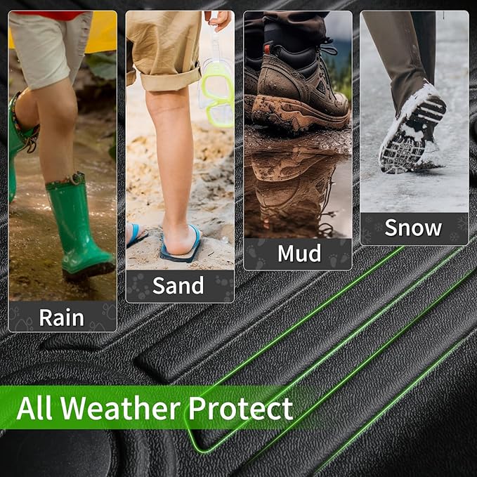 - 【ALL-WEATHER PROTECTION】HAFIDI weatherproof mats. Ergonomically designed channels and raised edges effectively trap liquids, sand, snow, etc. and protect the vehicle floor well. The anti-slip buckle design is consistent with the original car position to ensure that the floor mat is firmly fixed in place.