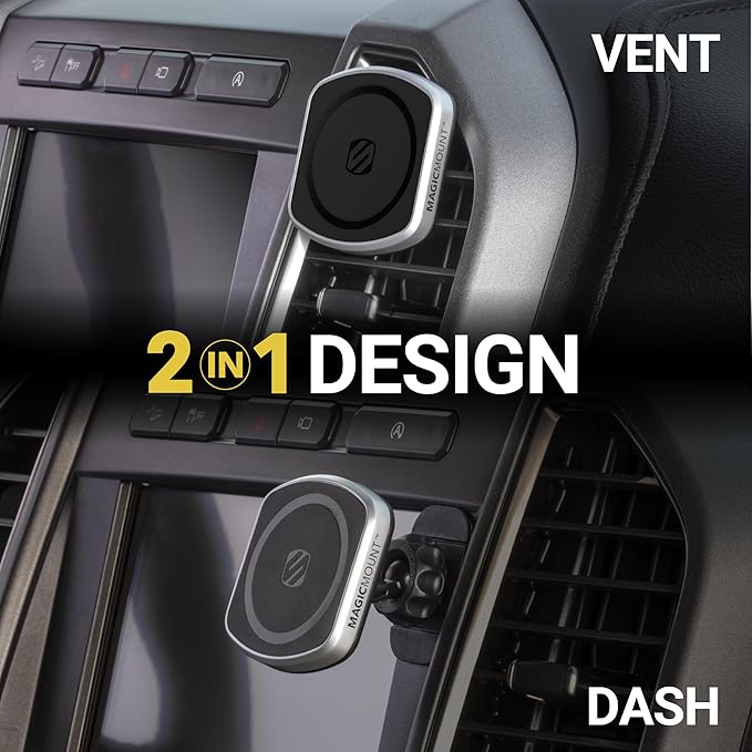 Scosche MP2DVM MagicMount Pro2 Magnetic Cell Phone Holder, Adhesive Car Dashboard Mount with Removable Vent Clip, Hands-Free Phone Stand Compatible with MagSafe, iPhone 16/15/14/13/12 Series and More