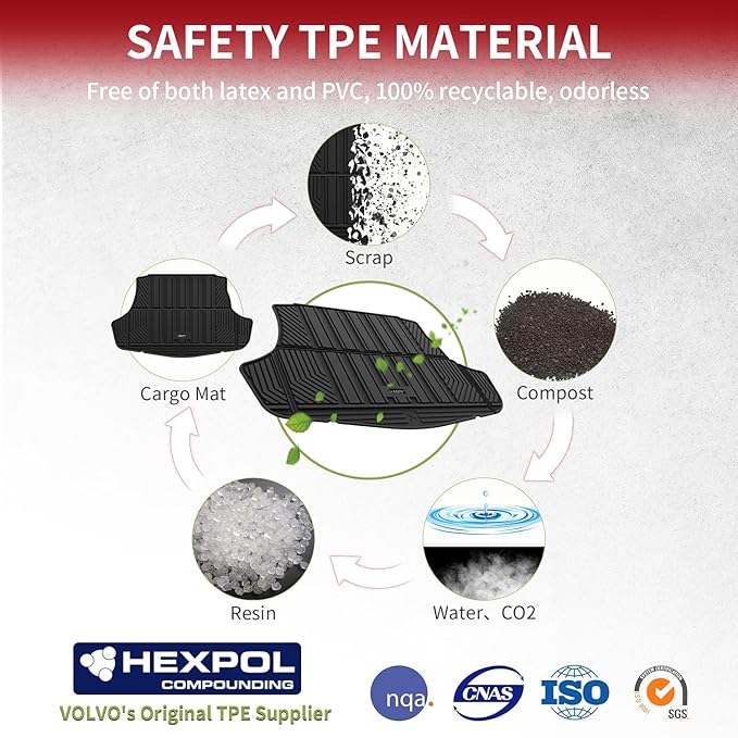 - 【Premium TPE Material】LASFIT cargo mat made of 100% brand new TPE material (Thermoplastic Elastomer) for a comfortable and soft touch and exquisite finish. More friendly to the elderly, children and pets. Exclusively designed anti-slip studs for more safety and shock and sound absorbent.