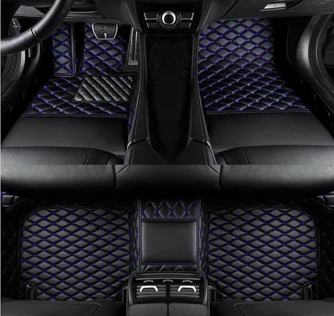 Errva Custom Personalized Floor Mats for Cars,Luxury Full Coverage All Weather Car Floor Mats,Anti-Slip Leather Car Mat Set ,Custom Floor Mats for 98.99% of Cars, Trucks & SUVs (Black Blue 2)