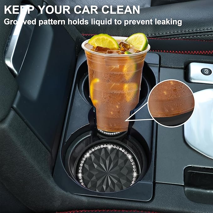 - Bling Crystal Rhinestone Design: The stylish bling design is a good interior decoration to your car. You can't miss these utility and beautiful cup holder coasters.
