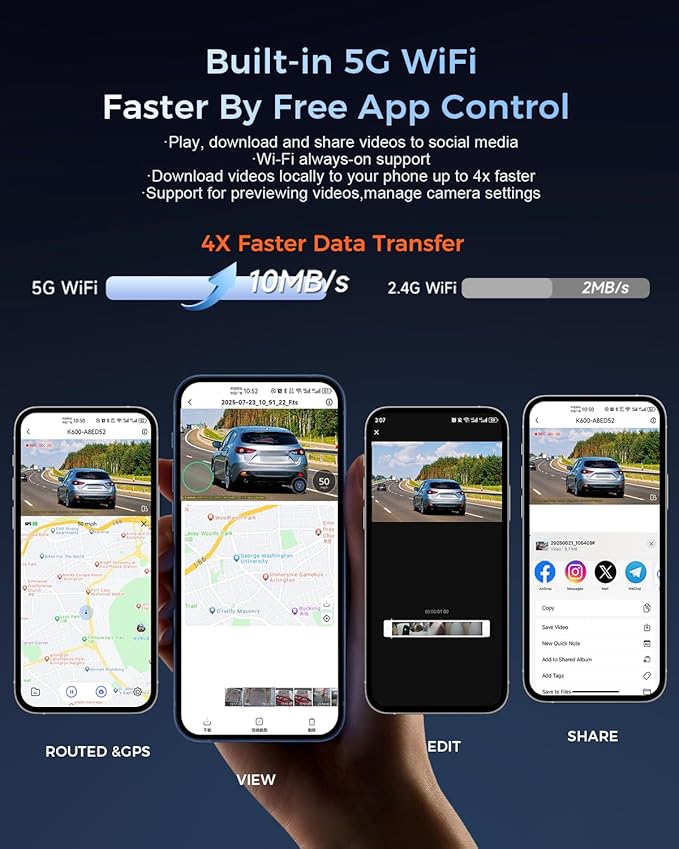 - 【Intuitive 3.59" Screen & Easy App system】The 3.59 inch big display provides a clear and convenient interface for reviewing footage. Use the app control with 5G without wires Wi-Fi to phone manage, view, and share your recordings easily and share video instantly, ensuring you never miss a moment.