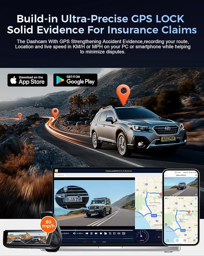 - 【Built-in GPS and Reliable Parking Surveillance】 That dash cams interior GPS records your vehicles lane drive route, speed, and location, providing vital data in case of an accident. The 24/7 parking mode keeps your car under monitor even when parked, offering peace of mind with continuous protection anti theft. Please note that this feature requires a hardware kit.(ASIN: B0D98CC7L8, not included). Suitable for semi truck, trucks, jeep, van, autos, suv, motorcycle.