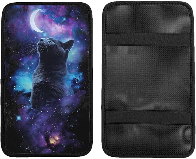 Universal Car Center Console Cushion Pad, Cute Cat and Moon Soft Waterproof Car Center Console Cover Auto Armrest Seat Box Cover Protector for Most Vehicle SUV Truck Car