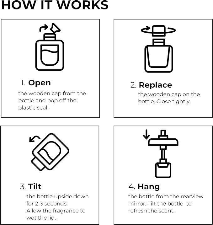 - Hanging Design: Quality square premium luxury designed bottles with wooden bottle caps etched with the bright spot logo, experience the perfect blend of style and functionality, make every drive a sensory delight with our car air freshener diffuser. Packaged in a beautiful box that is a great gift for men and women, family and friends.