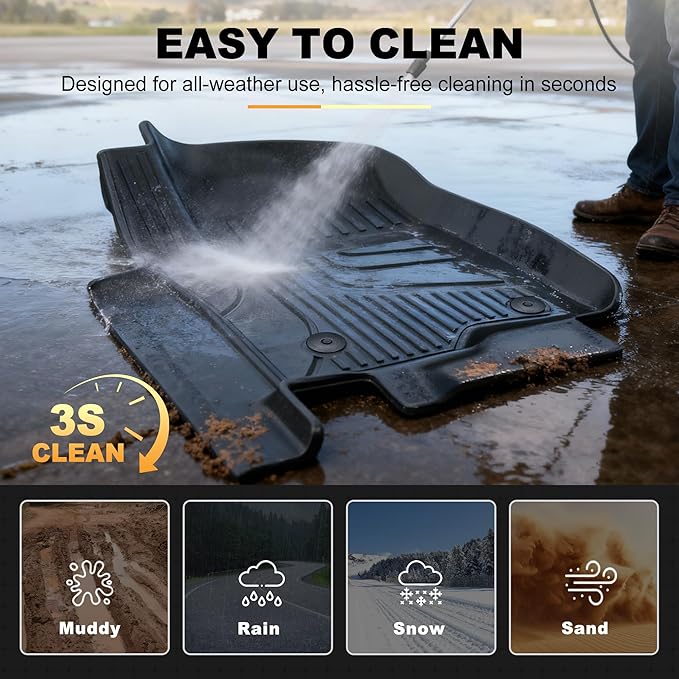- 【Custom Fit for Chevy Silverado 1500 / GMC Sierra Crew Cab】The floor mats compatible with 2019-2026 Chevy Silverado 1500 / GMC Sierra 1500 & 2020-2026 Chevy Silverado / GMC Sierra 2500HD/3500HD Crew Cab, no need trimming. The car mats include front and rear row floor mats. Adopts 3D screening technology to capture every corner and crevice to offer perfect fit and coverage.