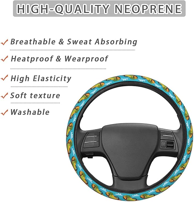Summer Flip Flops Print Steering Wheel Covers Anti-Slip Elasticity Car Accessories Steering Wheel Protector Universal 15 Inch for Cars SUV Vehicle Truck
