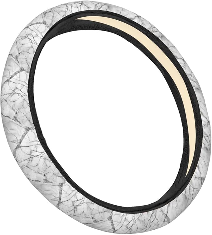 White Marble Texture Steering Wheel Covers Anti-Slip Elasticity Car Accessories Steering Wheel Protector Universal 15 Inch for Cars SUV Vehicle Truck