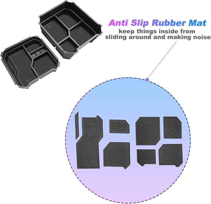 - ♈Easy Maintenance: Our 2024 Cybertruck armrest storage also adds dust-proof mats. The included custom rubber mats not only prevent items from sliding but also make cleaning a breeze. The mats can be easily removed and cleaned, ensuring a tidy and hygienic storage space for your belongings.