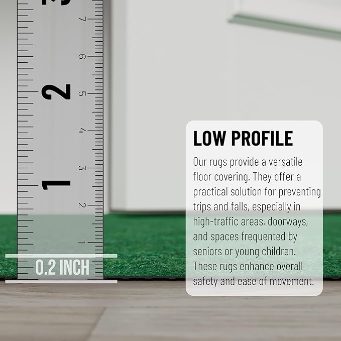- Enhanced Durability with Scrape Rib Pile Texture: Made from strong, wear-resistant polyester featuring a scrape rib pile that traps dirt and debris on the surface for easier cleaning while providing excellent durability. The slim build lays flat—prevents curling or bunching and fits easily under doors and furniture.