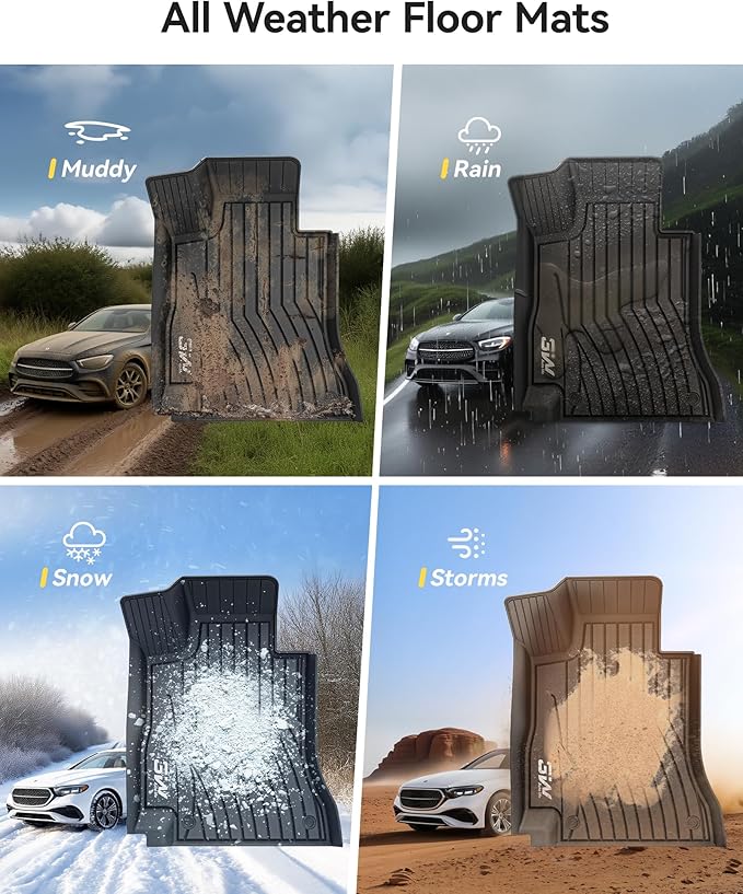 - DURABILITY: These benz e300 e320 e350 2024 floor mats apply to all-weather driving and are made with the durable TPE. The weather and stain resistant quality of our liners protect your interior car from dirt, mud, snow, and rain, ensure that they will look new always