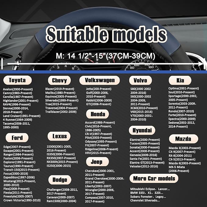 - 【UNIVERSAL FIT】Universal Fit - It fits medium-sized steering wheels with a diameter 37-38 cm/14.5-15 inch.