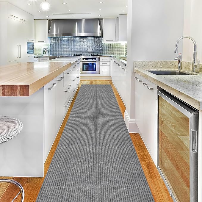 - Enhanced Durability with Scrape Rib Pile Texture: Made from strong, wear-resistant polyester featuring a scrape rib pile that traps dirt and debris on the surface for easier cleaning while providing excellent durability. The slim build lays flat—prevents curling or bunching and fits easily under doors and furniture.
