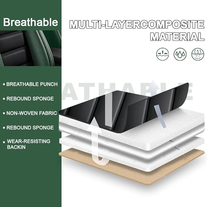 - 🚗HIGH QUALITY LEATHER🎁: Each seat cover is made of multi-layer material that is soft and durable. The surface is made of high quality leather, soft and waterproof. The middle part is filled with high resilience foam to enhance the sitting experience. The bottom layer is made of non-slip fabric to hold the cushion firmly in place.