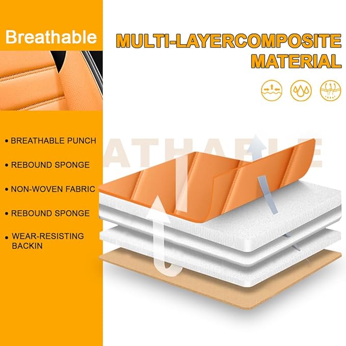 - 🚗HIGH QUALITY LEATHER🎁: Each seat cover is made of multi-layer material that is soft and durable. The surface is made of high quality leather, soft and waterproof. The middle part is filled with high resilience foam to enhance the sitting experience. The bottom layer is made of non-slip fabric to hold the cushion firmly in place.