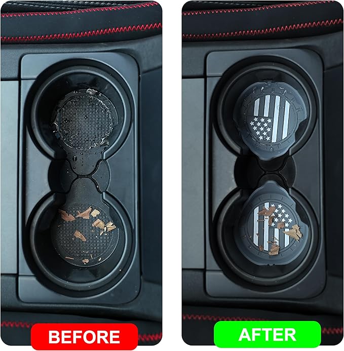 - Protection for Car Cup Holder: Deep cup shape design with non-slip base, the coasters can catch and hold spills, condensation, crumbs and other messes to make your car clean, and also keeps cans and bottles from scratching or damaging your car cup holder.