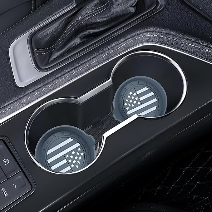 Amooca Car Cup Coaster Universal Non-Slip Silicone Cup Holder Insert Car Interior Accessories for Drink American Flag US Flag 2 Pack Grey