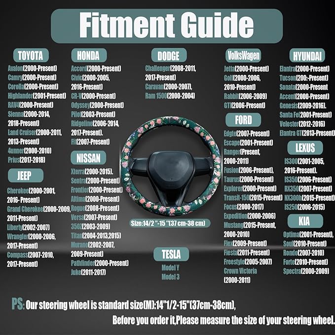 - PERFECT FIT: This cover fits the outside diameter of a 14.5–15-inch steering wheel. Please measure your steering wheel size before purchasing.(Approximately 37–38 cm). It's suitable for most cars in the model of the "O" steering wheel,Please measure the size of your steering wheel or refer to our fitment guide before purchasing.