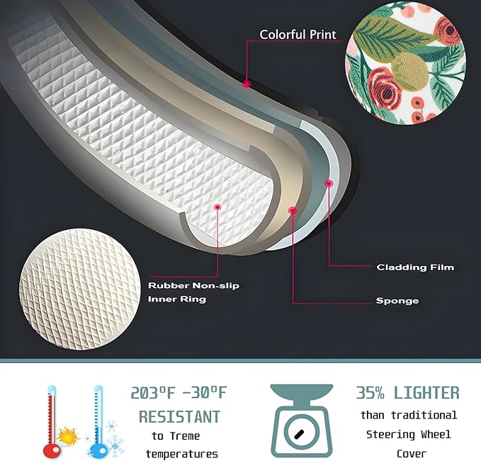 - DURABLE MATERIAL: The Watercolor Burgundy Flowers steering wheel cover is made of durable polyester fabric with fine workmanship, reinforced stitches and wear-resistant material.The inner is made of natural rubber, which is sun-proof, wear-resistant and corrosion-resistant,Non-slip rubber material can hold your steering wheel securely without falling off.