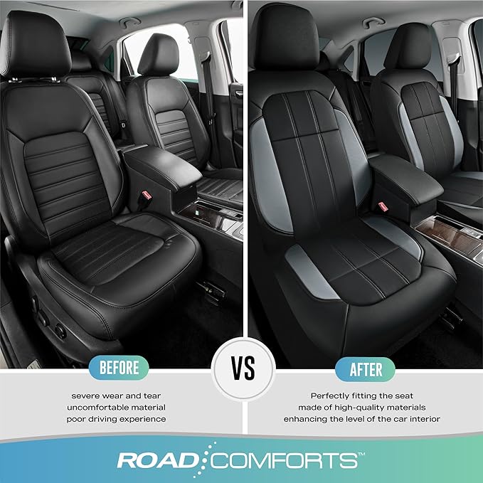 Road Comforts Car Seat Covers, Breathable Leather Seat Covers, Car Seat Covers Front Seats Airbag Compatible, Automotive Seat Covers for Most Cars, Vans, Trucks, SUV- Gray