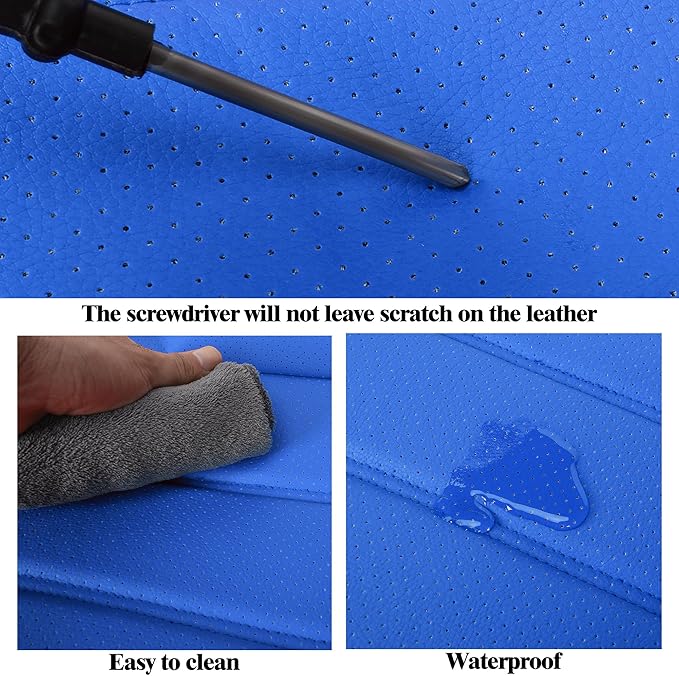 - 【Premium Leather】Our car seat covers are designed by high-quality leather and 3D foam back support. The leather is stretchy and feature a perforated design that improves breathability, enhances comfort while giving the covers a luxurious texture that enhances the overall look of the car interior.