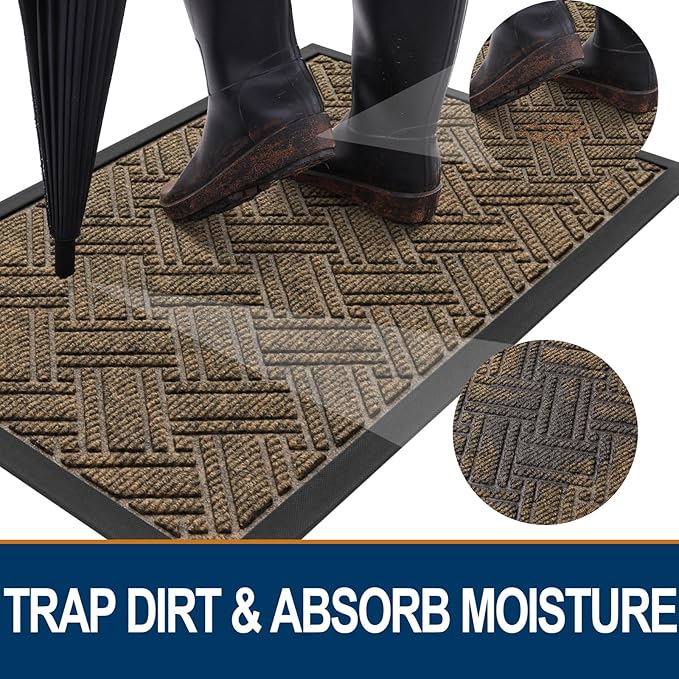 - CAPTURES DIRT AND MOISTURE: The OLANLY door mat features a woven polyester top with deep grooves that trap dirt, dust, gravel, mud, sand and so on, preventing them from entering your home. Its absorbent surface keeps moisture at bay, maintaining a dry and clean indoor environment