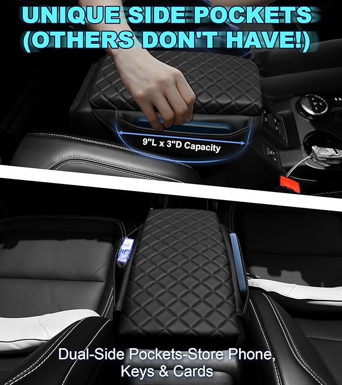 - [Non-slip, Elastic Belt Fixation] - The console lid pad is fixed by elastic bands, and the bottom is added with friction design, which will not slide forward after being put on.