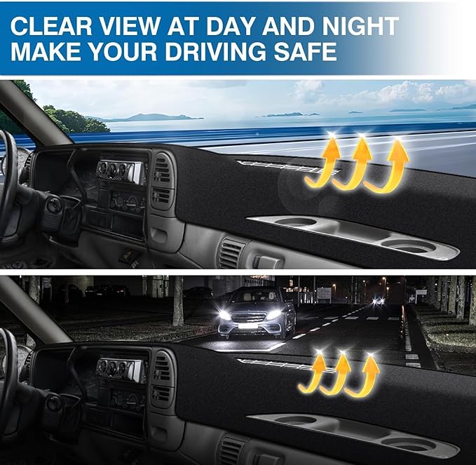 - [Super Protection] Our high quality dash vent covers which is light and soft and resistant to distorting, fading, and wrinkles. Protects the dashboard surface from UV rays. It hides the damage already done on your dashboard. Also helps reduce dangerous windshield glare, making driving more comfortable and safer.
