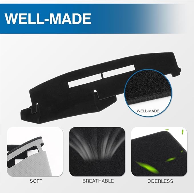 - [Premium Material] Our center console dash cover for GMC Yukon/Chevy Blazer Suburban made of rich quality polyester. Soft, breathable and odorless. Not easy to wrinkle. All edges of the car sunshade mat are carefully hemmed and stitched, making the cover comfortable to touch. Its surface is not completely smooth, so items will not fall off.
