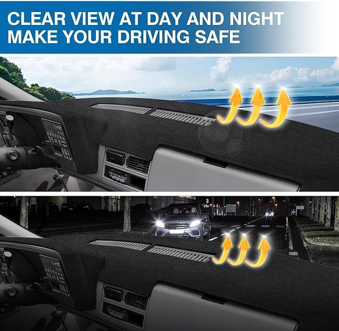 - [Super Protection] Our high quality dash vent covers which is light and soft and resistant to distorting, fading, and wrinkles. Protects the dashboard surface from UV rays. It hides the damage already done on your dashboard. Also helps reduce dangerous windshield glare, making driving more comfortable and safer.