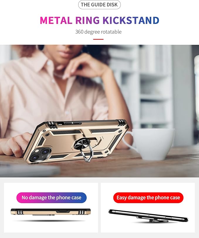 IKAZZ for iPhone 14 Plus Case 6.7 Inch with Screen Protector,Military Grade Shockproof Heavy Duty Protective Phone Cover Pass 16ft Drop Test with Magnetic Kickstand Car Mount Holder,Gold