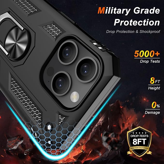 IKAZZ for iPhone 14 Pro Max Case 6.7 Inch with Screen Protector,Military Grade Shockproof Heavy Duty Protective Phone Cover Pass 16ft Drop Test with Magnetic Kickstand Car Mount Holder,Black