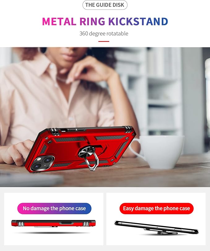 IKAZZ for iPhone 14 Plus Case 6.7 Inch with Screen Protector,Military Grade Shockproof Heavy Duty Protective Phone Cover Pass 16ft Drop Test with Magnetic Kickstand Car Mount Holder,Red