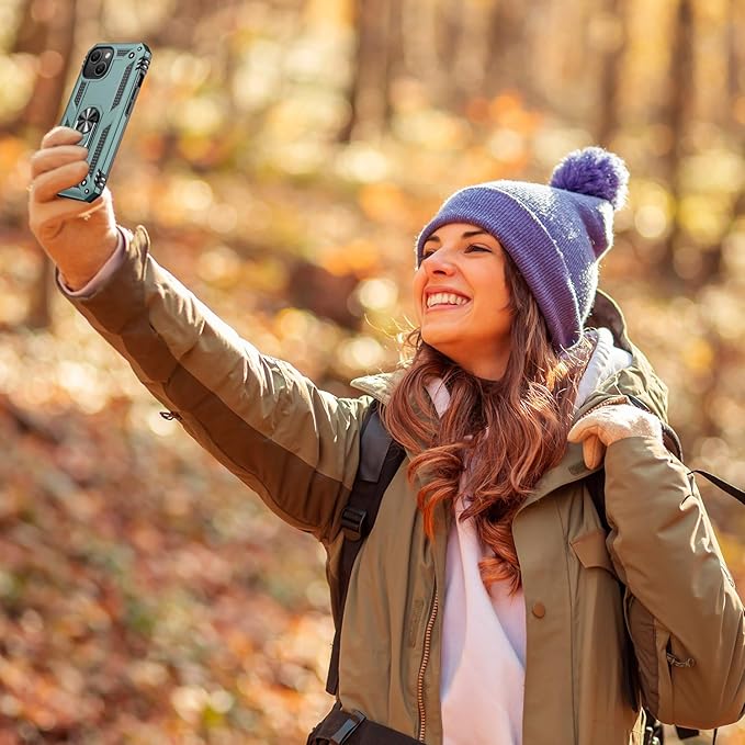 IKAZZ for iPhone 15 Case 6.1 Inch with Screen Protector,Military Grade Shockproof Heavy Duty Protective Phone Cover Pass 16ft Drop Test with Magnetic Kickstand Car Mount Holder,Pine Green
