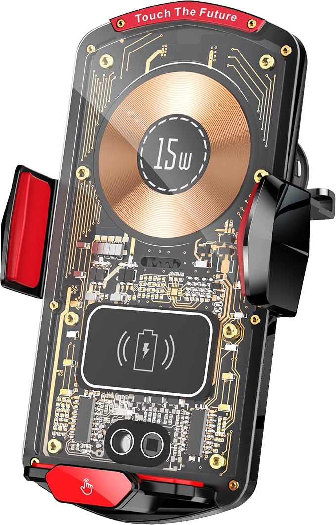 Wireless Car Charger Mount,Phone Holder,15W Fast Charging, Air Vent Clamp,Auto Clamping,360° Rotating Ball Joint,Transparent Case,Compatible with iPhone 16/15/14/13/12/11/10, Samsung Galaxy Series