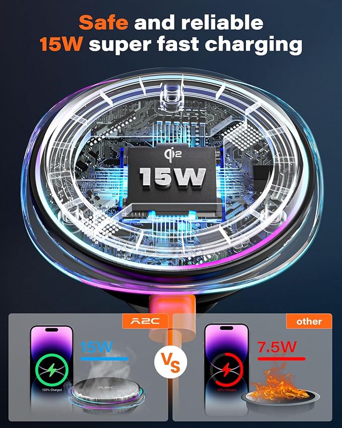- Certified 15W Safe Fast Charging: Officially Qi2-certified 15W charger for MagSafe iPhone 17 16 15 14 13 12 series. Snap your phone on, charging and go. Ideal for a safe long road trips