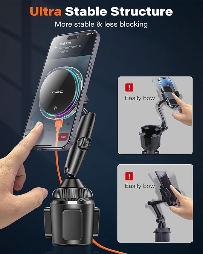 - Easy to Use: The versatile cup phone holder mount is very simple to assemble without any tools. Enjoy all the conveniences of hands-free navigation or hands-free calls. Great road trip essentials for car, truck, Tesla, Ford F-150, Tacoma, Rogue