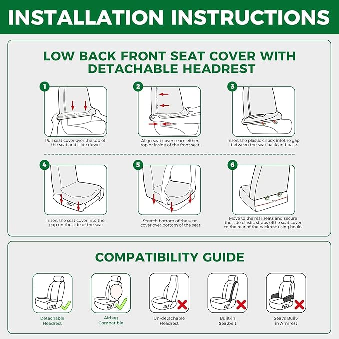 - Easy to install. After reading the installation instructions, you can easily install these front seat covers in a few minutes without any tools.