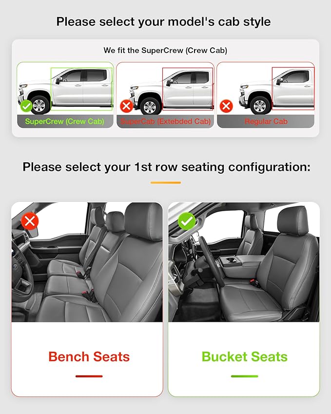 - : Vehicle Service Type 1st row bucket seat and 2nd with under seat storage box, 2017-2026 Ford F250/F350/F450/F550, not for vinyl floor 1st row bucket seat and 2nd with under seat storage box, 2017-2026 Ford F250/F350/F450/F550, not for vinyl floor See more
